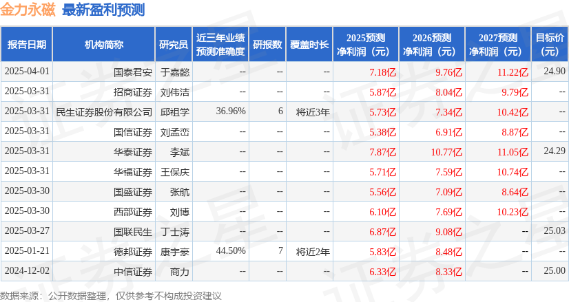 华福证券有限责任公司王保庆,曹钰涵近期对金力永磁进行研究并发布了研究报告《【以此为准】2024年报点评:产能扩张提速,新兴领域布局加速》,给予金力永磁买入评级。
