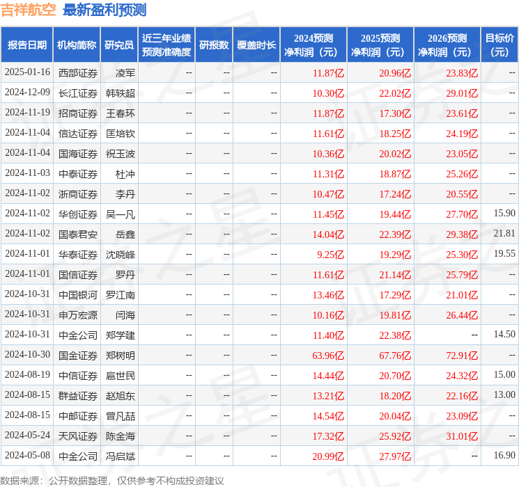 最新盈利预测明细如下: