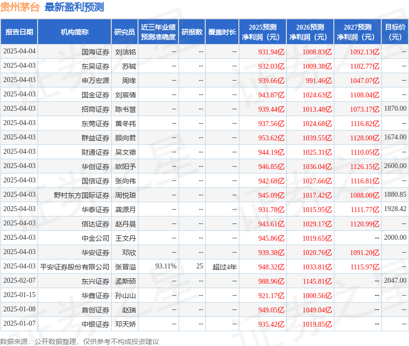 太平洋证券股份有限公司郭梦婕近期对贵州茅台进行研究并发布了研究报告《贵州茅台:2024年顺利收官,2025年理性增长行稳致远》,上调贵州茅台目标价至1888.75元,给予买入评级。