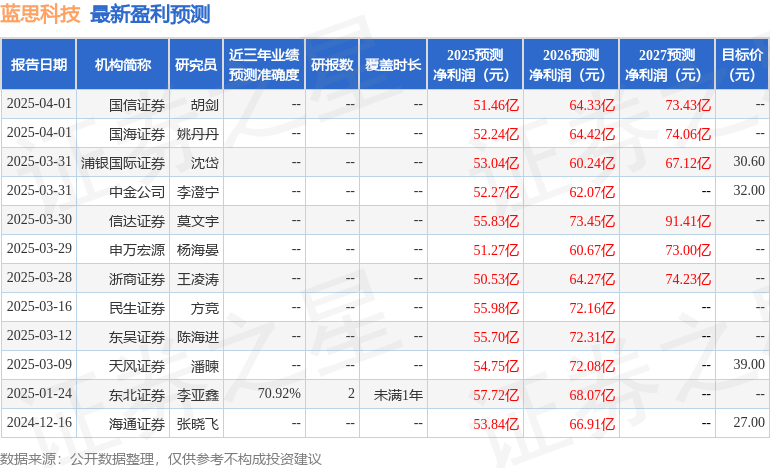 最新盈利预测明细如下: