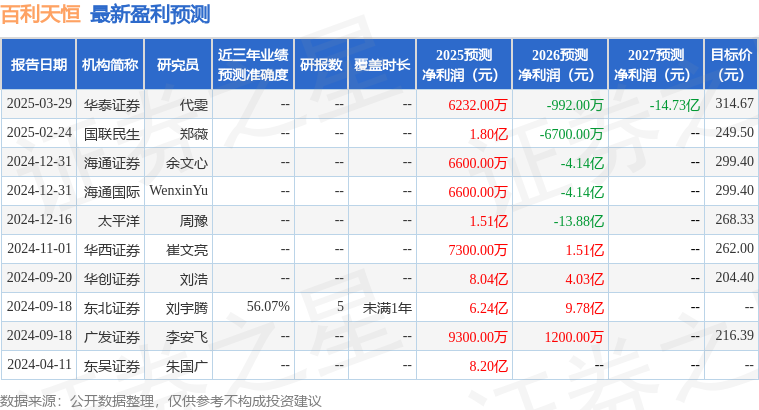 证券之星数据中心根据XM外汇官网近三年发布的研报数据计算,东北证券刘宇腾研究员团队对该股研究较为深入,近三年预测准确度均值为56.07%,其预测2025年度归属净利润为盈利6.24亿,根据现价换算的预测PE为160.42。
