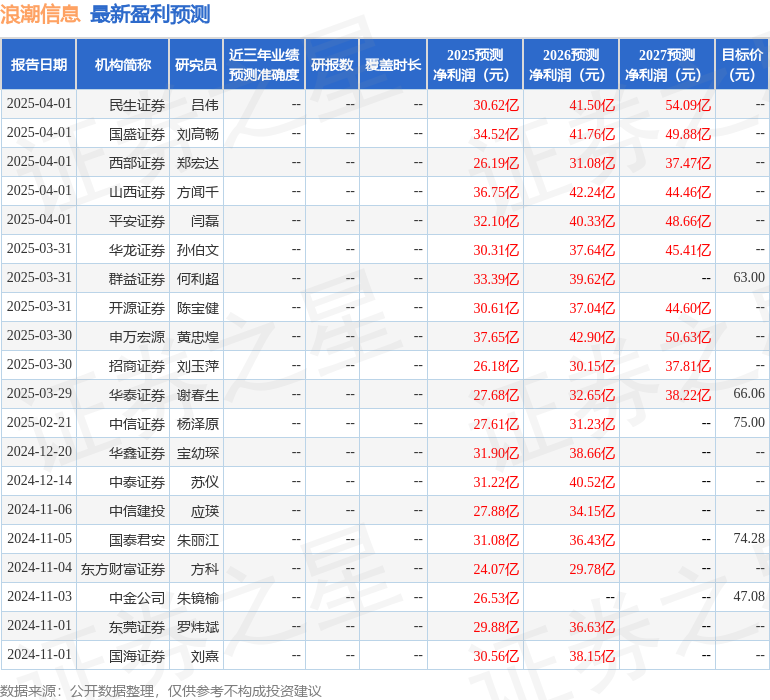 财信证券股份有限公司何晨,黄奕景近期对浪潮信息进行研究并发布了研究报告《全年收入高速增长,25年算力景气度有望延续2024年报点评》,给予浪潮信息增持评级。