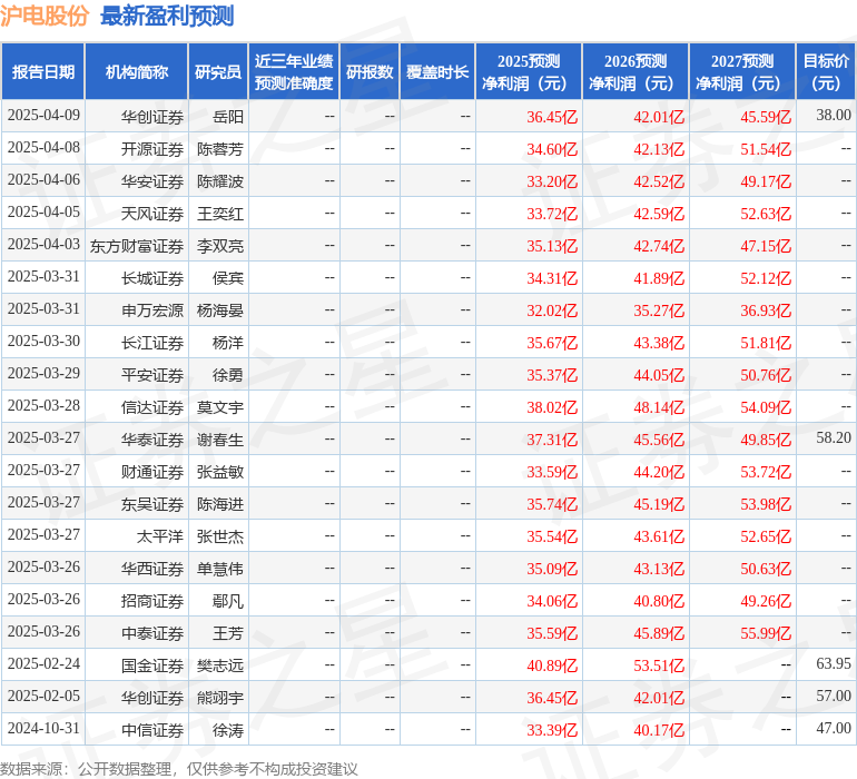 最新盈利预测明细如下: