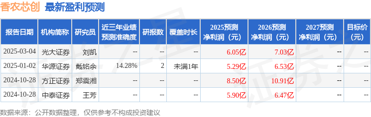 最新盈利预测明细如下: