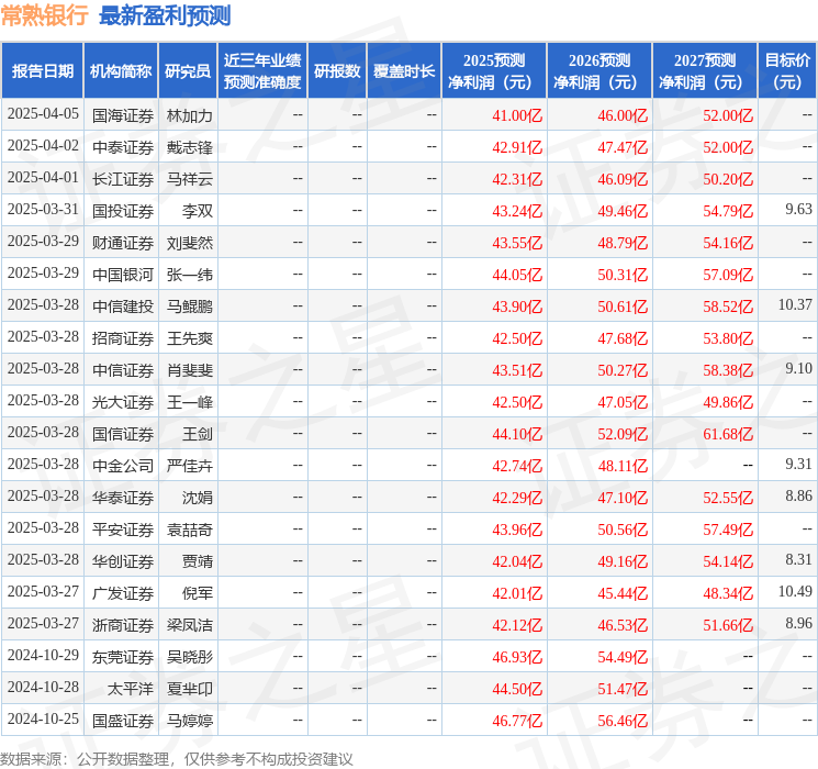 东海证券股份有限公司王鸿行近期对常熟银行进行研究并发布了研究报告《公司简评报告:负债成本管控强化,资产质量管理审慎》,给予常熟银行买入评级。