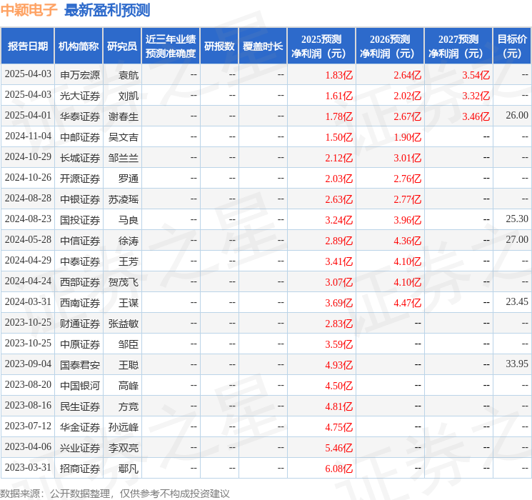 最新盈利预测明细如下: