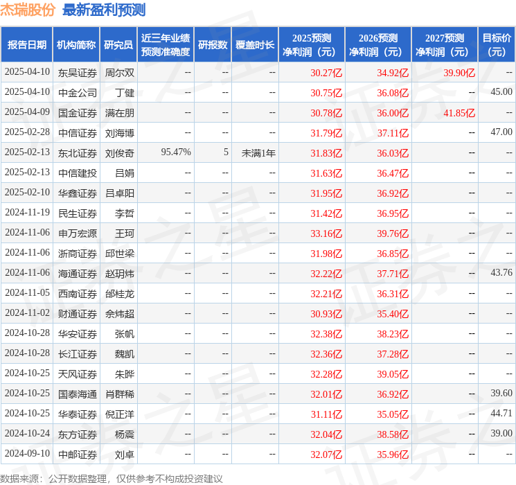 最新盈利预测明细如下: