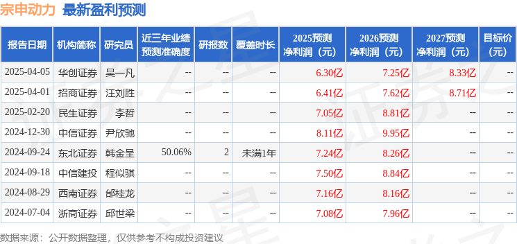 最新盈利预测明细如下: