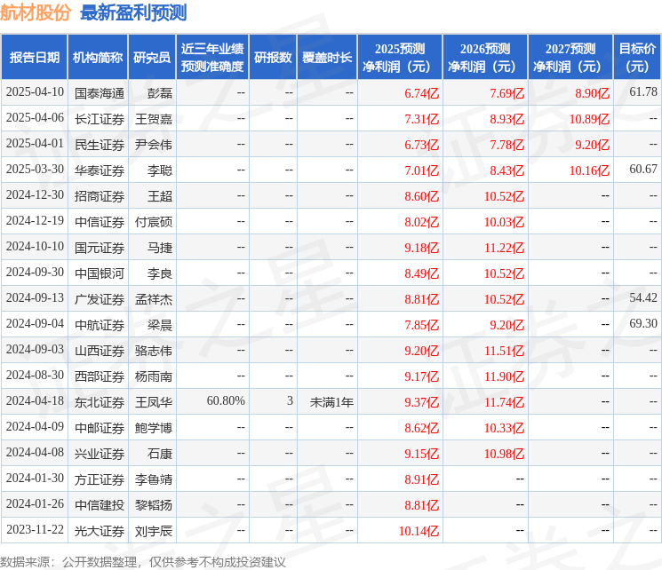中航证券有限公司张超,方晓明,闫天路近期对航材股份进行研究并发布了研究报告《2024年年报点评:全年业绩平稳,四季度利润增长98%》,下调航材股份目标价至64.0元,给予买入评级。