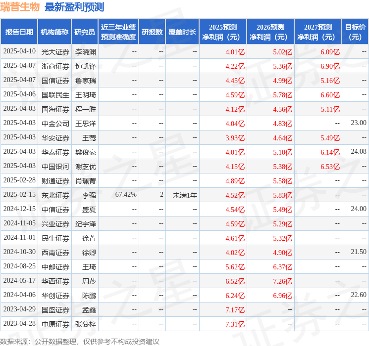 最新盈利预测明细如下: