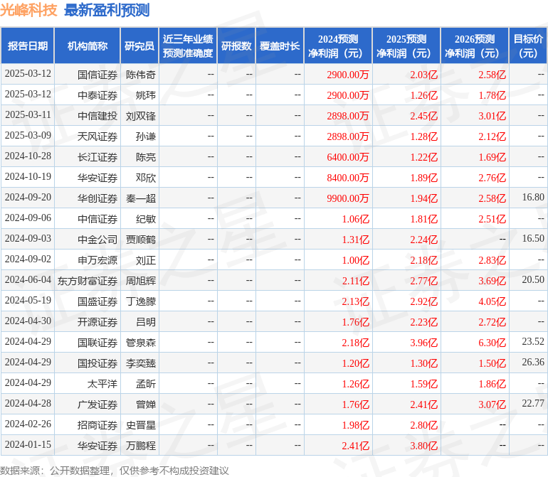 最新盈利预测明细如下: