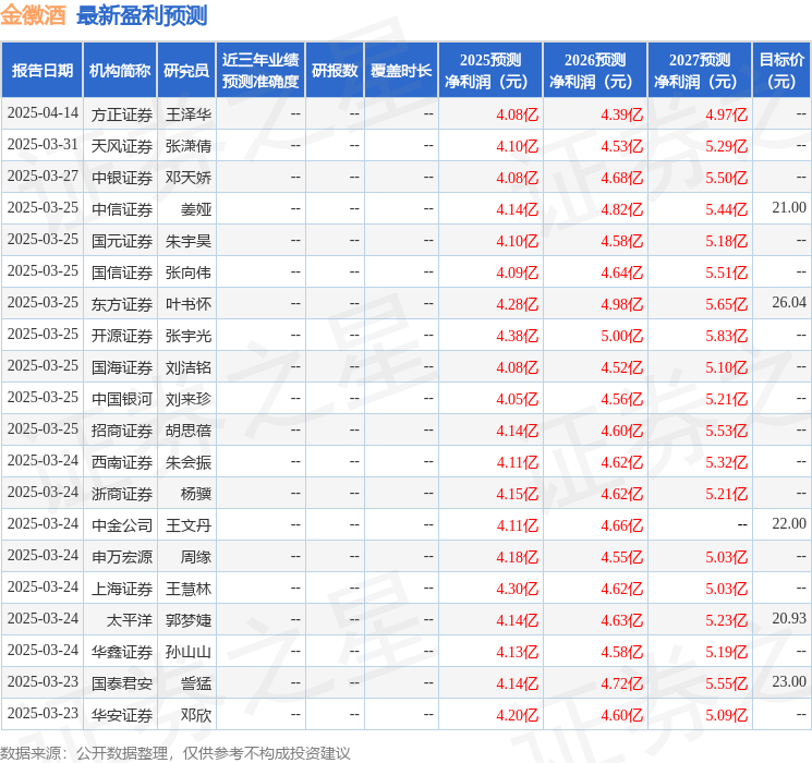 最新盈利预测明细如下: