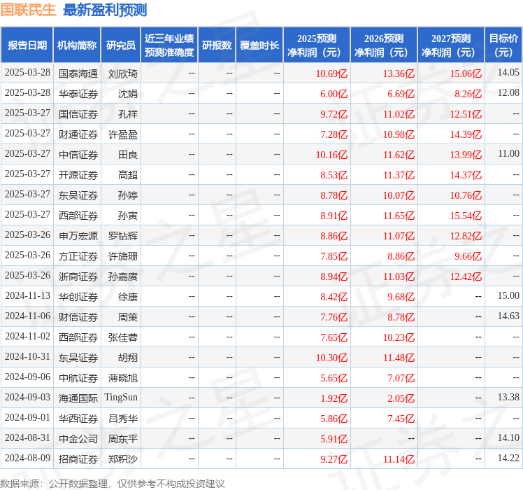 最新盈利预测明细如下: