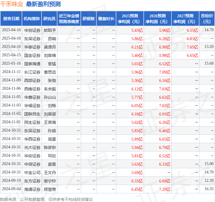 最新盈利预测明细如下: