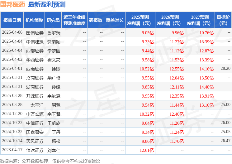 最新盈利预测明细如下: