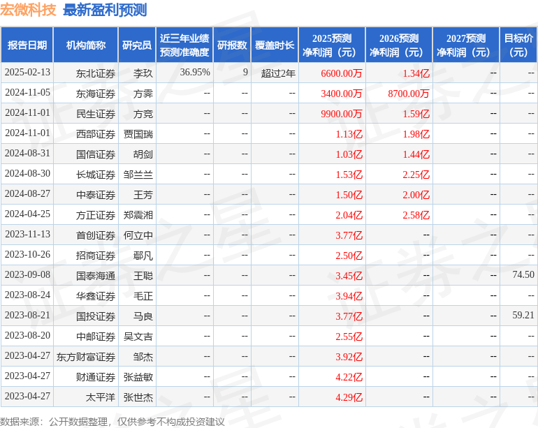 最新盈利预测明细如下: