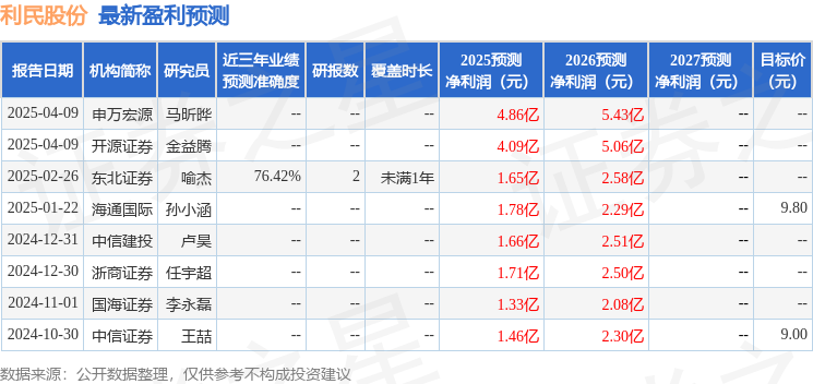 最新盈利预测明细如下: