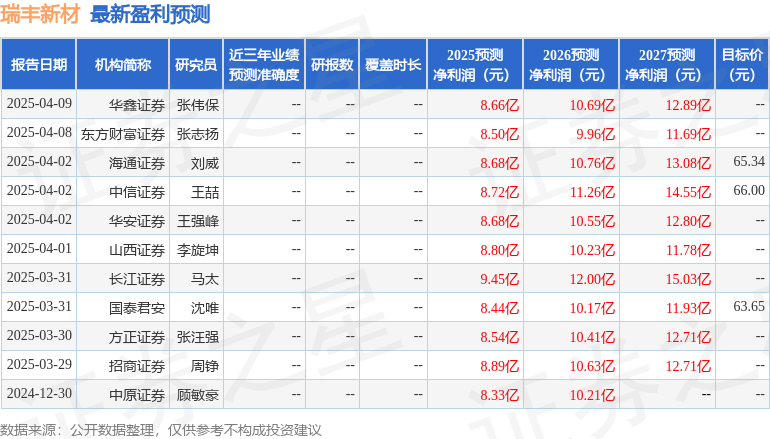 最新盈利预测明细如下: