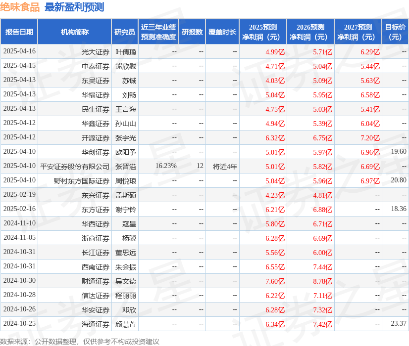 投资建议:公司作为卤味龙头,长期看同店或将改善,有望带来市占率提升。根据24年报和25Q1财报,我们调整盈利预测,预计25-27年营收为59/61/65亿元(25-26年前值为85/93亿元)XM外汇官网,同比-5%/+3%/+6%;归母净利润为4.9/5.7/6.4亿元(25-26年前值为9.5/11.2亿元),同比+116%/+16%/+13%,对应PE分别为21X/18X/16X,长期看公司仍有XM外汇官网望提升业务增长质量,维持“买入”评级。