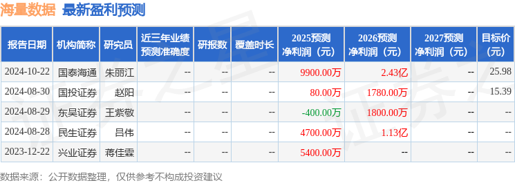 最新盈利预测明细如下: