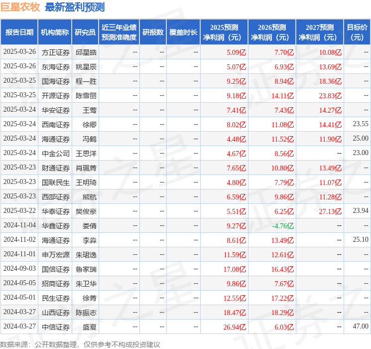 最新盈利预测明细如下: