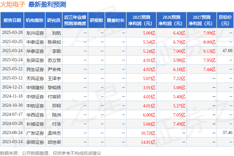 最新盈利预测明细如下: