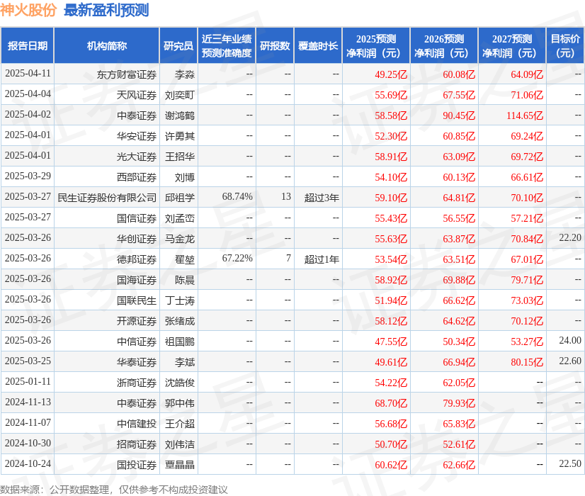 最新盈利预测明细如下: