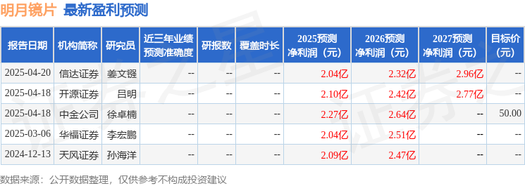 最新盈利预测明细如下: