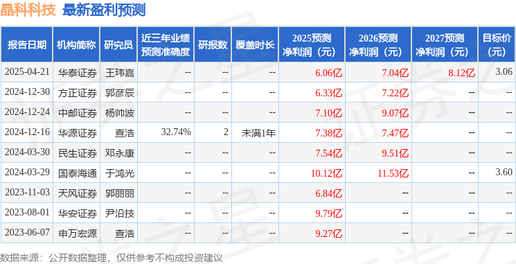 最新盈利预测明细如下: