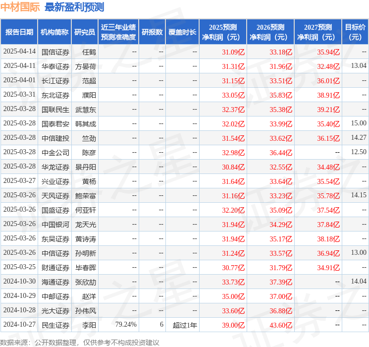 最新盈利预测明细如下: