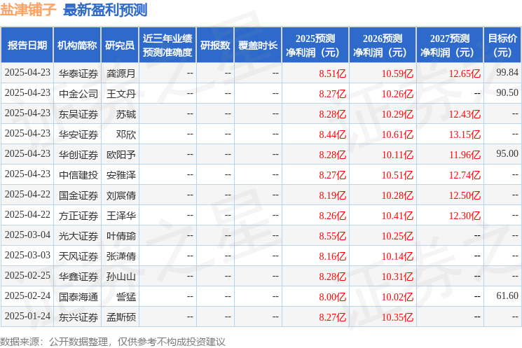 最新盈利预测明细如下: