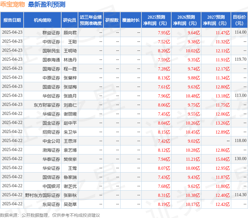 上海证券有限责任公司袁家岗,王慧林近期对乖宝宠物进行研究并发布了研究报告《2024年年报及2025年一季报点评:自有品牌稳步发展,盈利能力持续优化》,给予乖宝宠物买入评级。