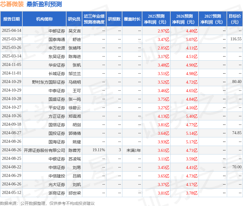 最新盈利预测明细如下: