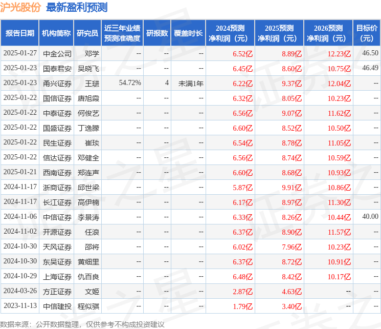 最新盈利预测明细如下: