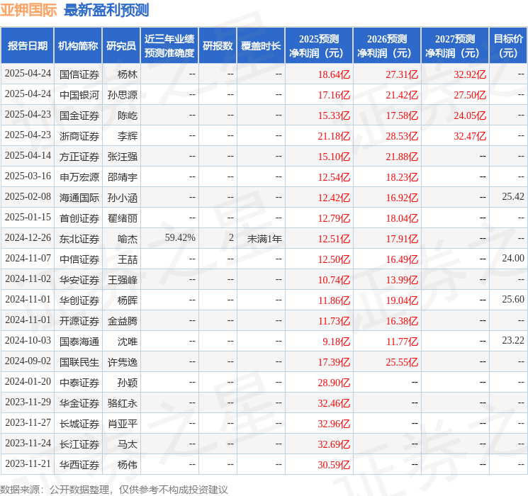 公司发布2024年报及2025年一季报,2024年营收35.48亿元,同比-8.97%;归母净利润9.50亿元,同XM外汇官网比-23.05%;扣非净利润8.92亿元,同比-30.00%;2024Q4营收10.65亿元,同比+5.86%、环比+35.76%;归母净利润4.32亿元,同比+79.57%、环比+74.15%;扣非XM外汇官网净利润3.77亿元,同比+40.44%、环比+52.54%。2025Q1营收12.13亿元,同比+91.47%、环比+13.81%;归母净利润3.84亿元,同比+373.53%、环比-11.07%;扣XM外汇官网非净利润3.84亿元,同比+376.02%、环比+1.88%,2024年公司计划不派发现金红利。考虑氯化钾景气及老挝税收优惠政策落地,我们上调2025-2026、新增2027年盈利预测,预计公司202XM外汇官网5-2027年归母净利润分别为18.22(+6.49)、24.08(+7.70)、29.26亿元,EPS分别为1.97、2.61、3.17元/股,当前股价对应PE为14.3、10.8、8.9倍。我们看XM外汇官网好公司持续低成本扩张钾肥产能,朝“世界级钾肥供应商”的战略目标稳步迈进,维持“买入”评级。