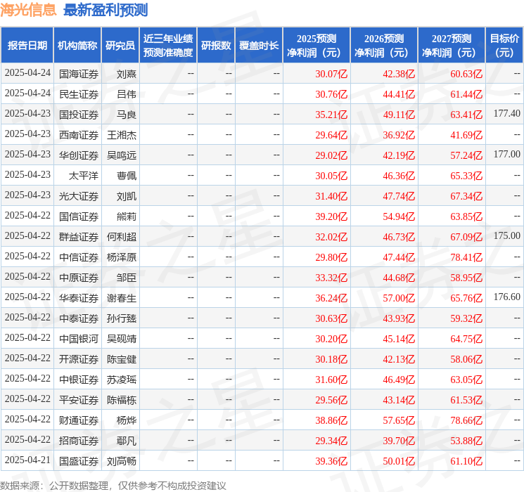 山西证券股份有限公司方闻千,邹昕宸近期对海光信息进行研究并发布了研究报告《一季度业绩延续高增趋势,合同负债大幅增加》,给予海光信息买入评级。