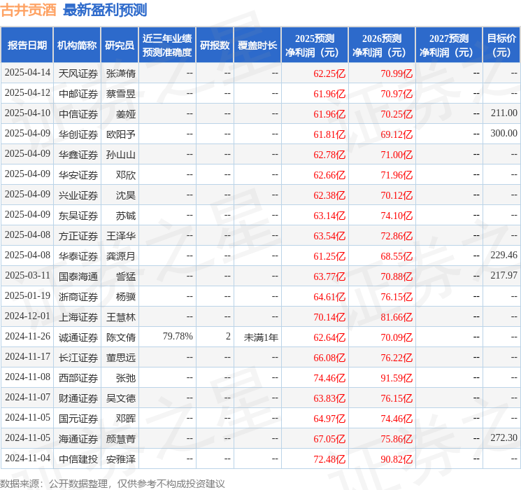 盈利预测:考虑到省内商务宴席景气度恢复状况,我们调整公司盈利预测,预计公司2025-2027年分别实现营业总收入XM外汇官网260.41/290.23/326.09亿元(25-26年原值260.34/290.16亿元),分别同比增长10.4%/11.5%/12.4%;实现归母净利润62.52/71.30/82.36亿元(2XM外汇官网5-26年原值62.66/71.96亿元),分别同比增长13.3%/14.0%/15.5%;当前股价对应PE分别为14/12/11倍,维持“买入”评级。
