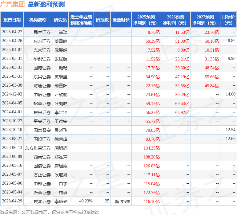 最新盈利预测明细如下: