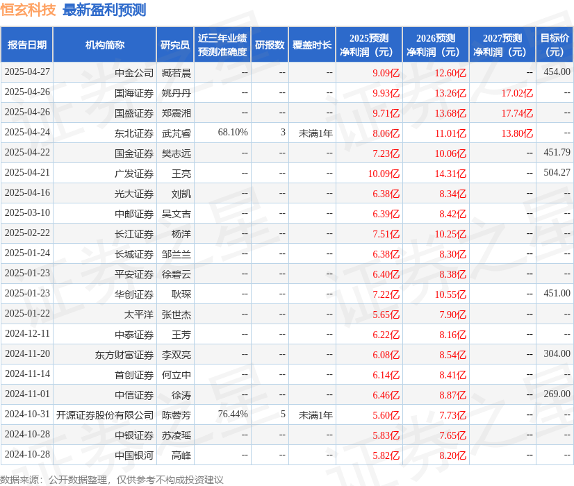 最新盈利预测明细如下: