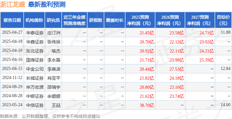 最新盈利预测明细如下: