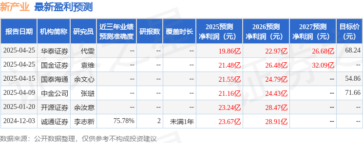中国银河证券股份有限公司程培,孟熙近期对新产业进行研究并发布了研究报告《2024年年报及2025年一季报业绩点评:国内外市场表现分化,客户结构持续优化》,给予新产业买入评级。