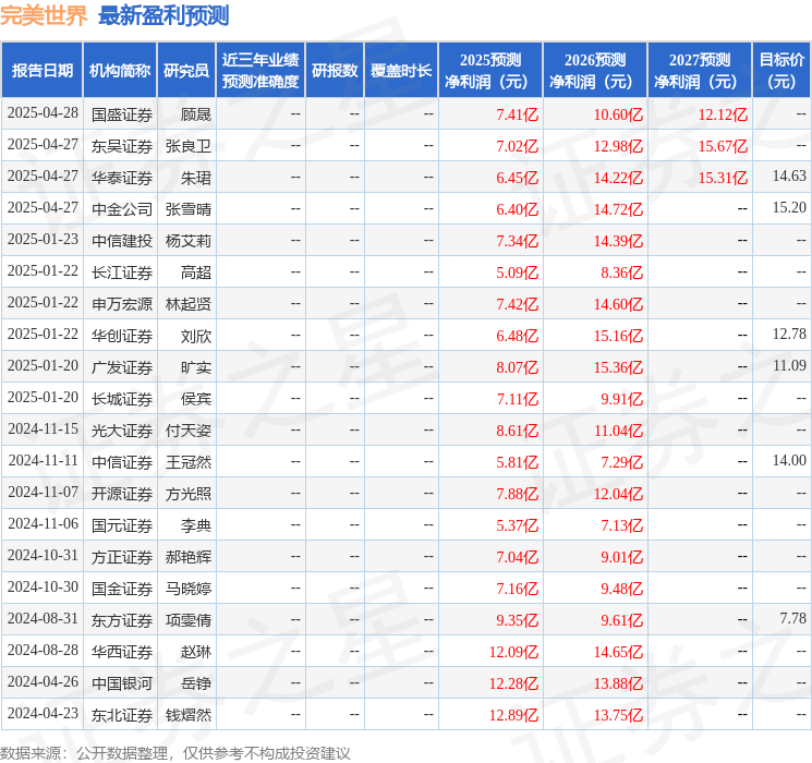 国元证券股份有限公司李典近期对完美世界进行研究并发布了研究报告《2024年年报及2025年一季报点评:业绩重回盈利轨道,关注重点产品上线进度》,给予完美世界增持评级。