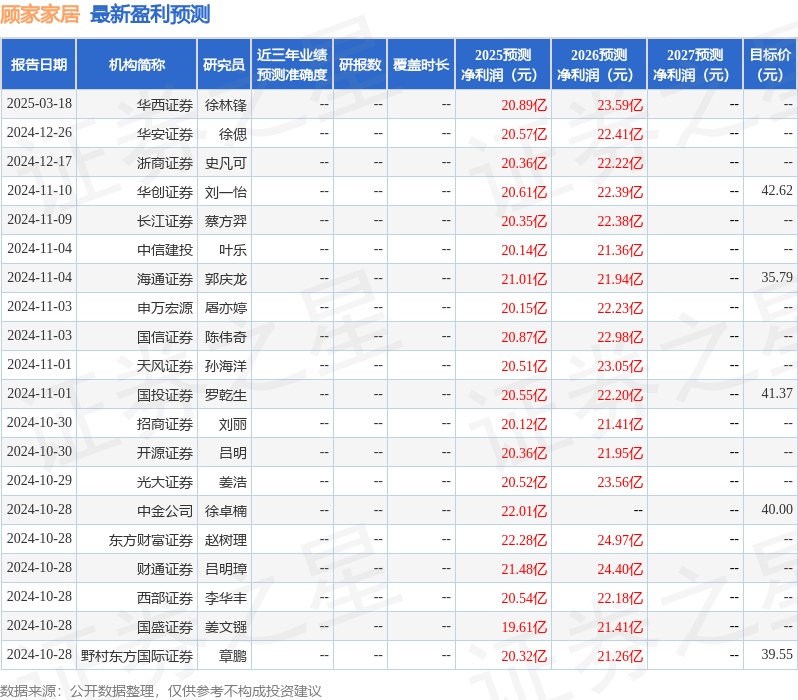 最新盈利预测明细如下: