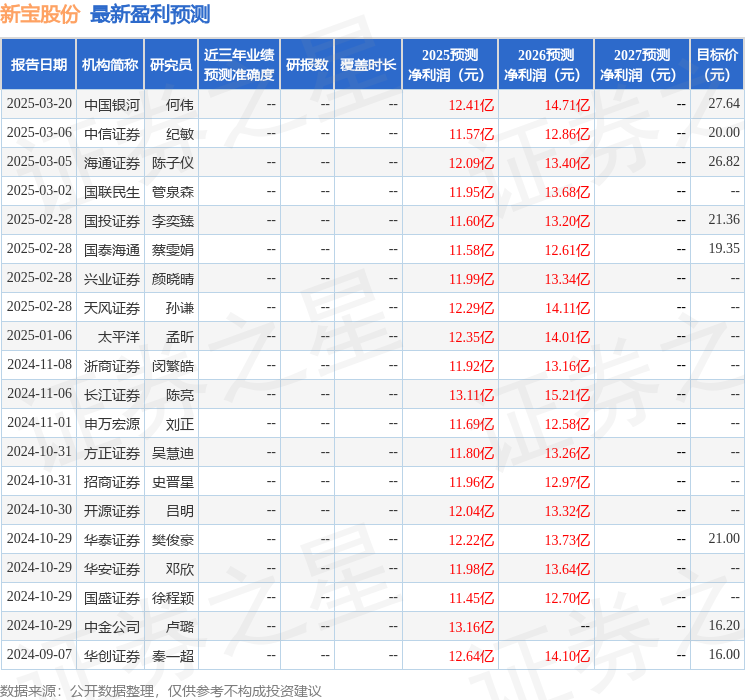 最新盈利预测明细如下: