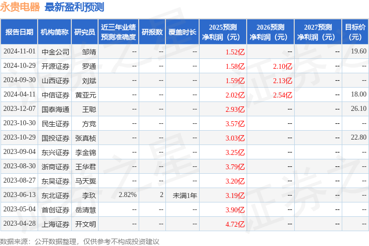 最新盈利预测明细如下: