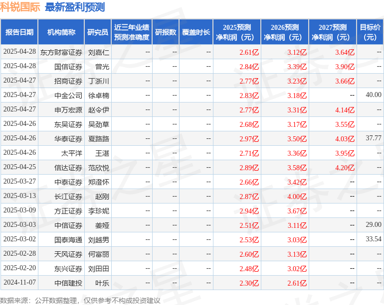 最新盈利预测明细如下: