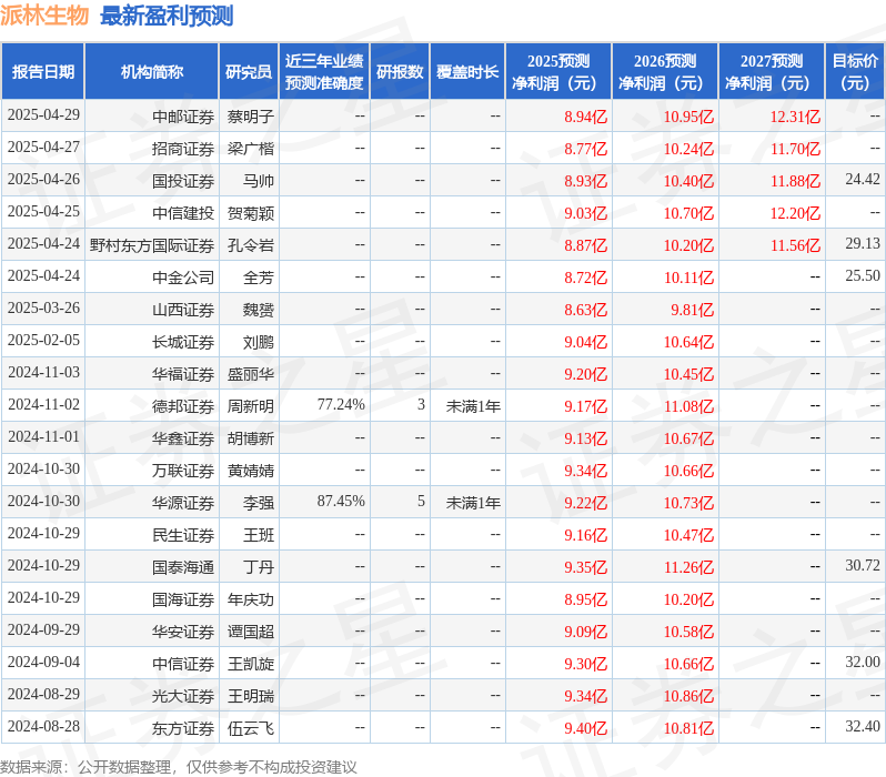 最新盈利预测明细如下: