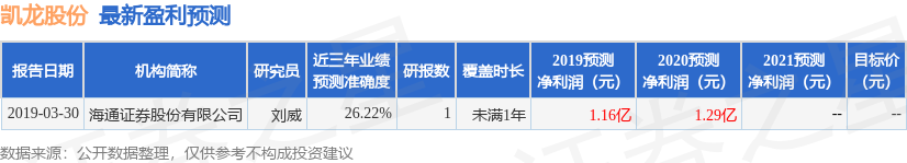证券之星数据中心根据近三年发布的研XM外汇官网报数据计算,海通证券股份有限公司刘威研究员团队对该股研究较为深入,近三年预测准确度均值为26.22%,其预测2019年度归属净利润为盈利1.16亿,根据现价换算的预测PE为23.17。