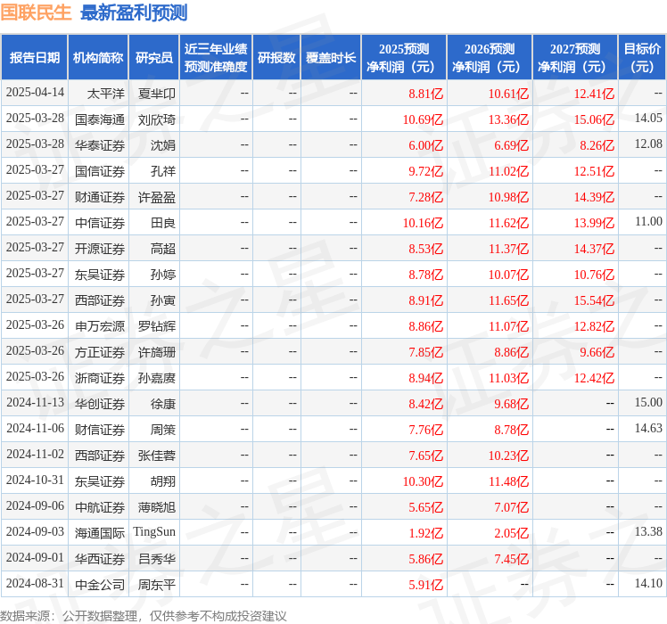 最新盈利预测明细如下: