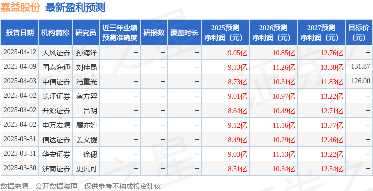 最新盈利预测明细如下: